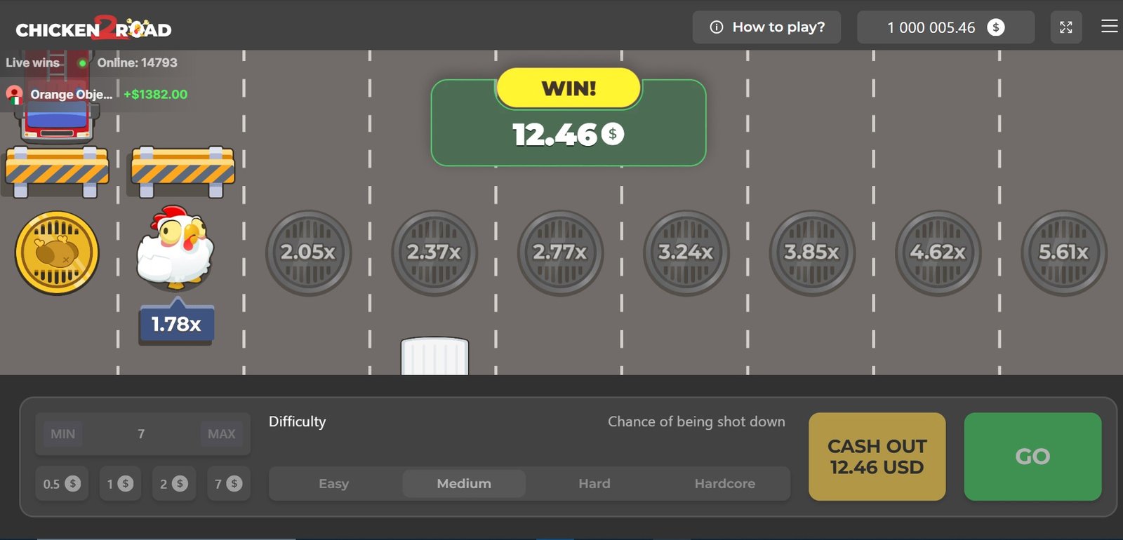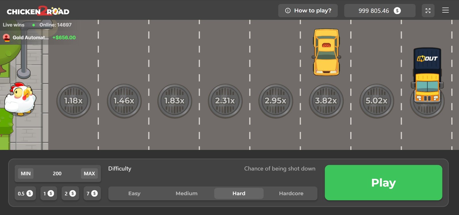 Pero, a diferencia de otros juegos como este, en Chicken Road 2 puedes elegir la dificultad de tu partida (fácil, medio, difícil o extremo). Entre más alta sea, mejores premios podrías conseguir, a cambio de un mayor riesgo cada vez que juegas.